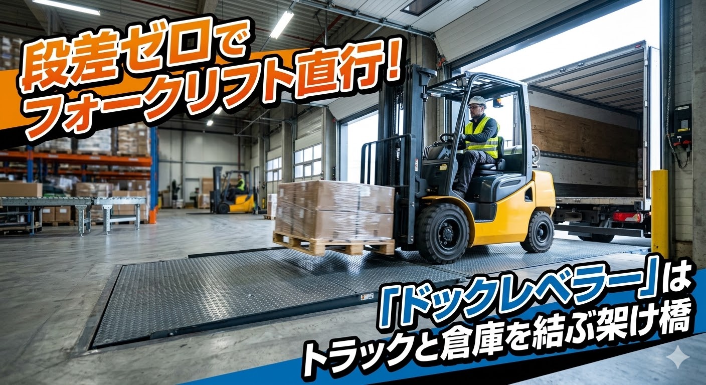 - ドックレベラーは、倉庫とトラックの段差を埋める可動式の橋渡し。